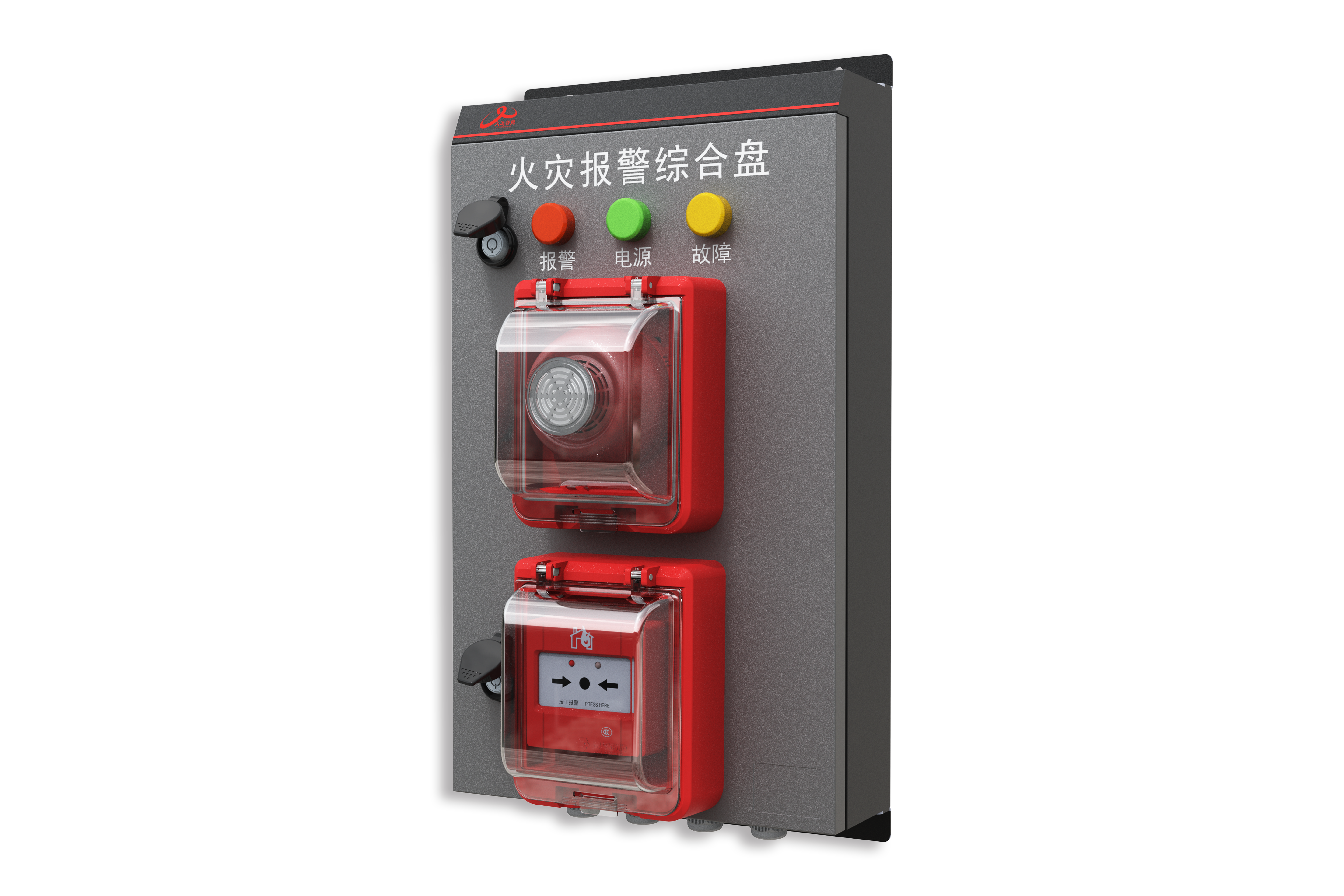 (4)具備電源、火警、故障指示燈,便于巡檢查找異常狀態(tài)的火災(zāi)報警綜合盤。